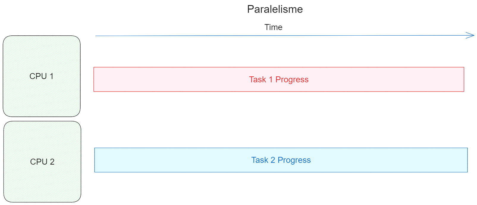 Dilain itu, paralel adalah beberapa pekerjaan dikerjakan secara bersamaan, ini mengharuskan perangkat yang digunakan mempunyai lebih dari 1 CPU.