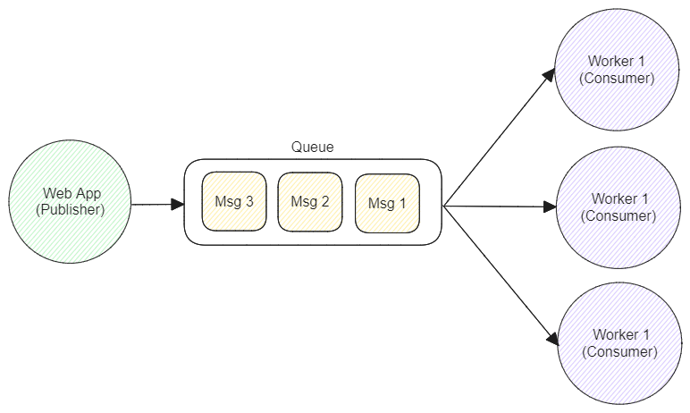 Setelah command tersebut dijalankan, worker tersebut akan standby menunggu message yang masuk. Selain itu kita juga bisa menjalankan instance dari worker tersebut lebih dari sekali baik di server yang sama ataupun server yang berbeda.